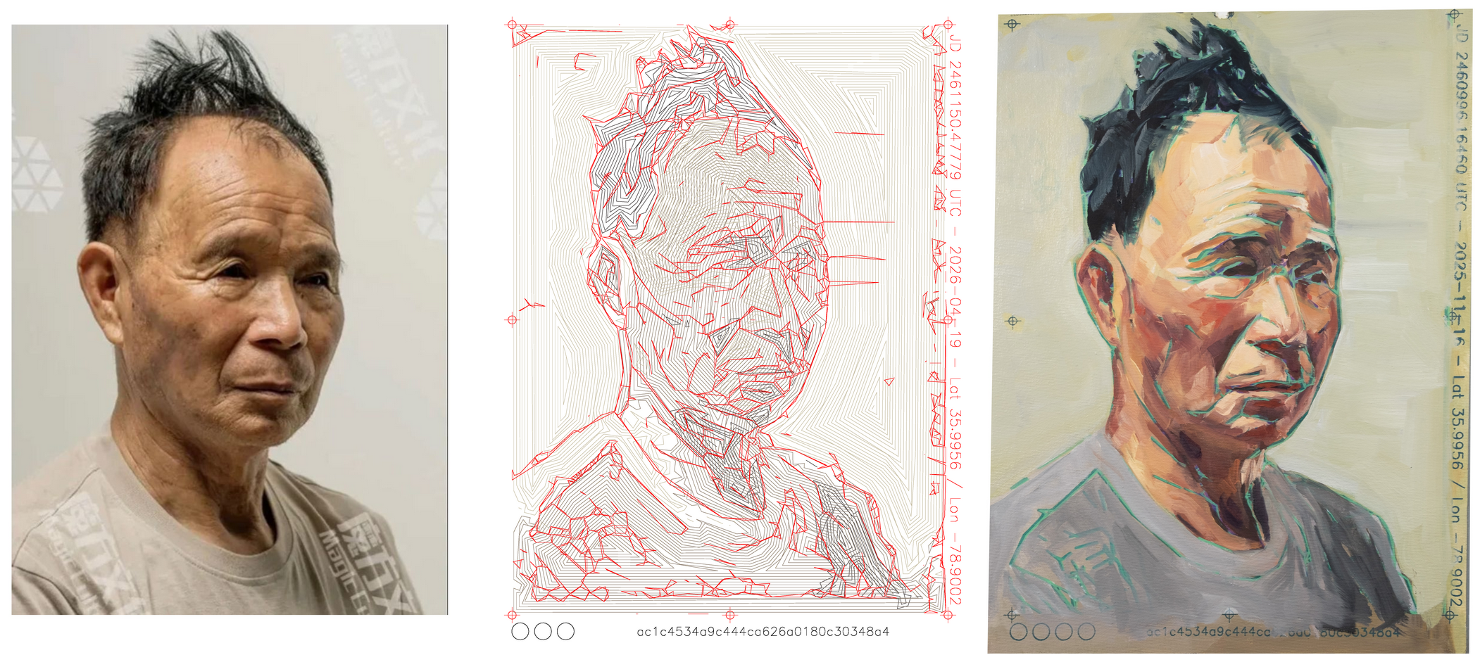 This practice places the work within a longer lineage of artists who have embraced emerging technologies not as replacements, but as liberating forces: from the optical devices of the Renaissance, to the material innovations of Flemish oil painting, to the portable paint tube that opened the world to Impressionism, etc. Each, reflects a willingness to engage the unknown, to appropiate novel technologies and subvert them to the trascendent job of art making.